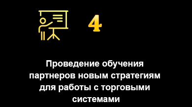 Обучать участников проекта финансовой грамотности, предоставлять лучшие инструменты для практики. Через экспертность увеличивать благосотояние партнеров компании.